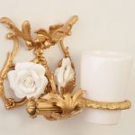 آویز مسواک دیواری برنز با آب طلا و گل چینی +گارانتی رنگ 10 ساله