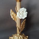 شمعدان رومیزی تک گل با برنز و آب طلا و گل چینی